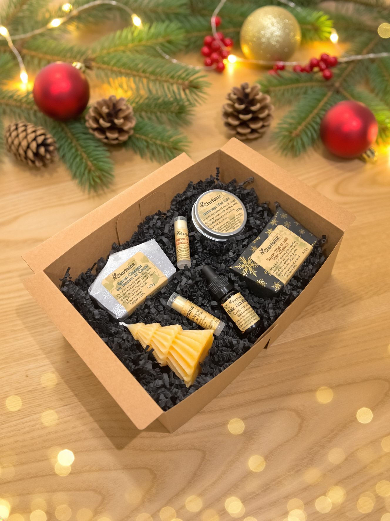 Le Rituel Enchanté de Noël est le coffret le plus complet de la collection : un véritable voyage magique entre chocolat chaud, miel, épices et ambiance boisée grâce à la bougie sapin en cire d’abeille.