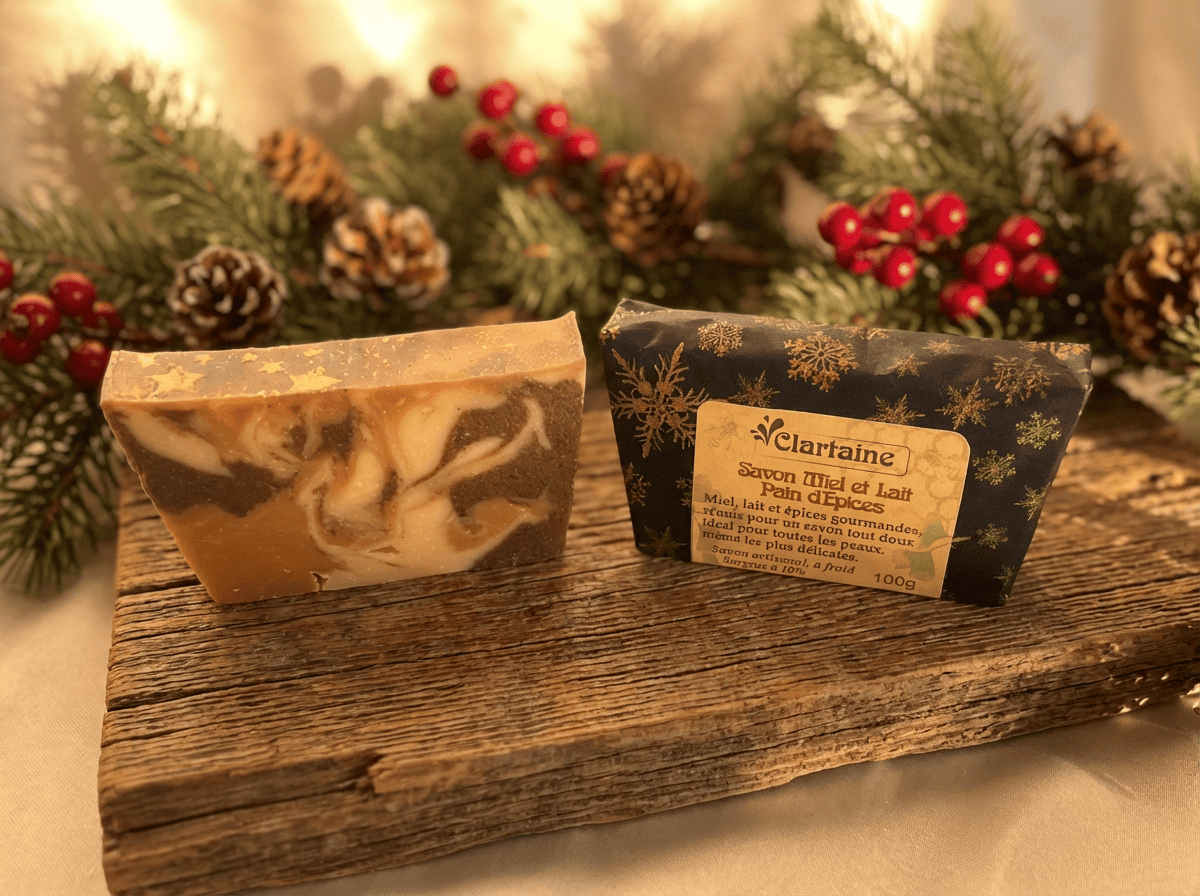 Un savon gourmand au miel, au lait et aux épices, pour une douche douce et chaleureuse.